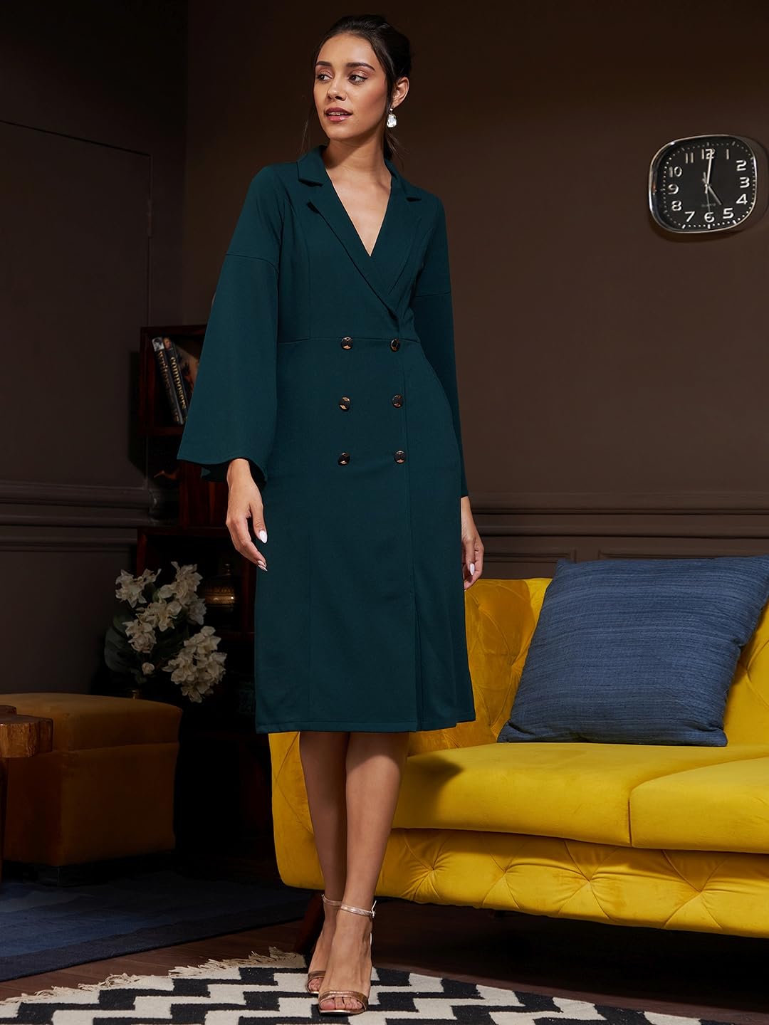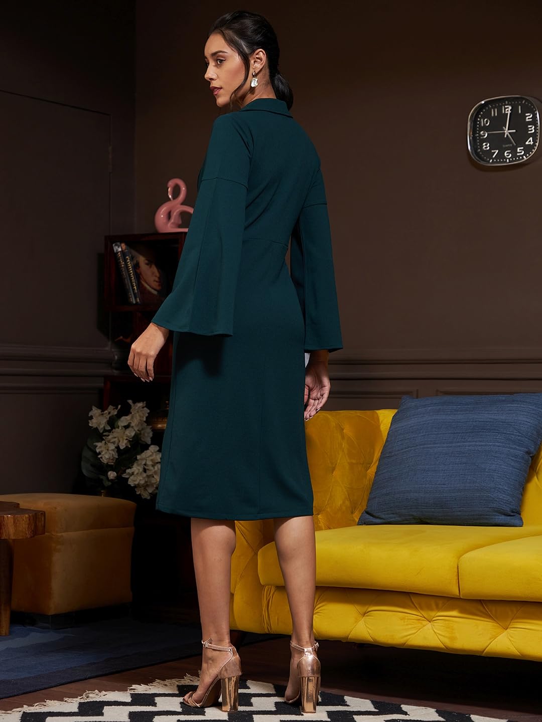Women and Girls Polyester A-line Collar Solid Print Midi Length Full Sleeve Formal Dress