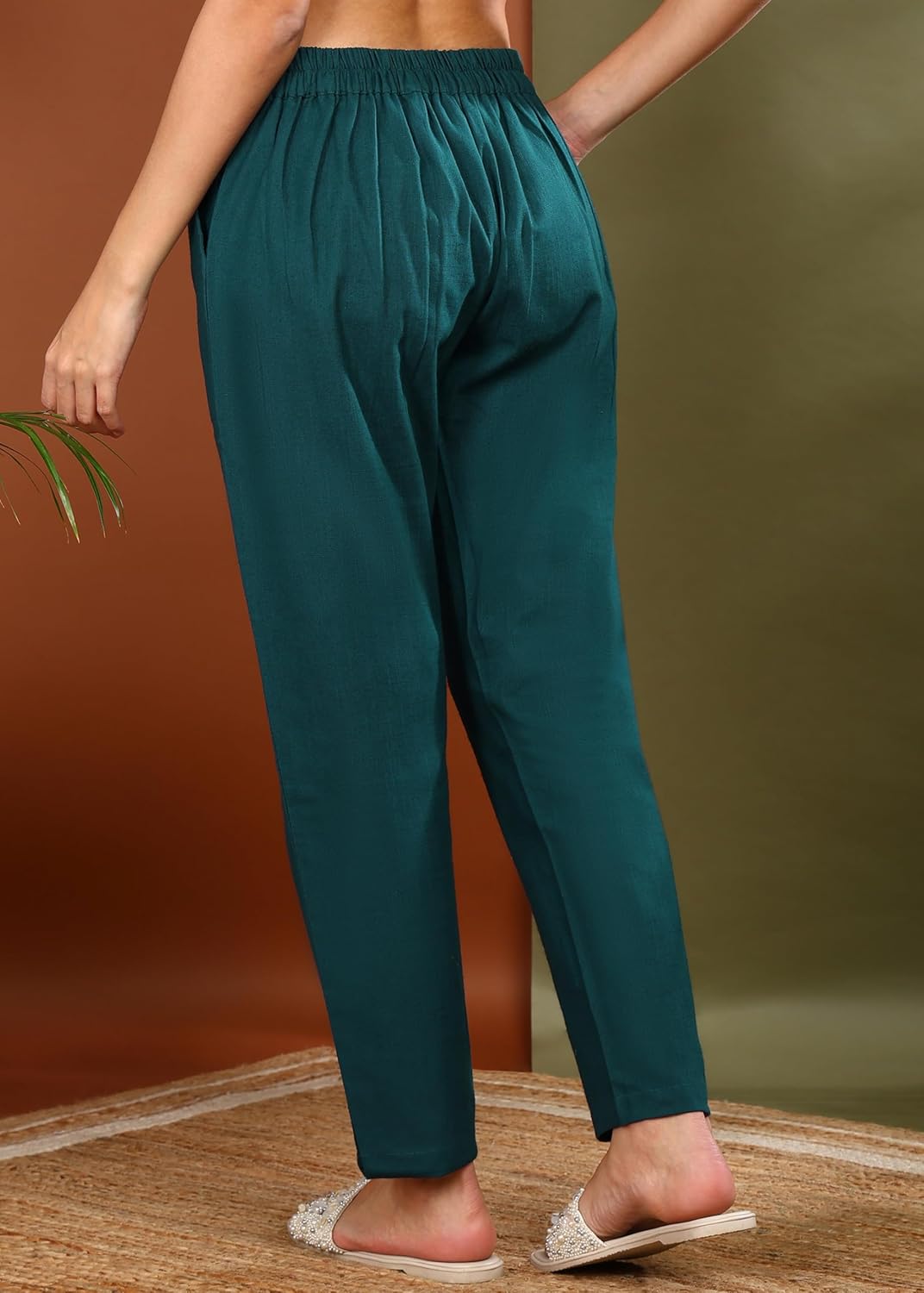 Yash Gallery Women’s Regular Fit Mid Rise Solid Cotton Slub Ankle Length Regular Trouser Pant