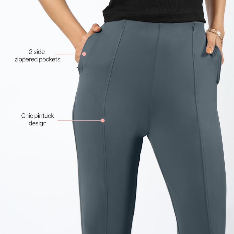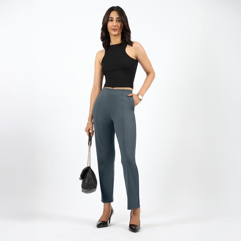 Yash Gallery Women’s Regular Fit Mid Rise Solid Cotton Slub Ankle Length Regular Trouser Pant