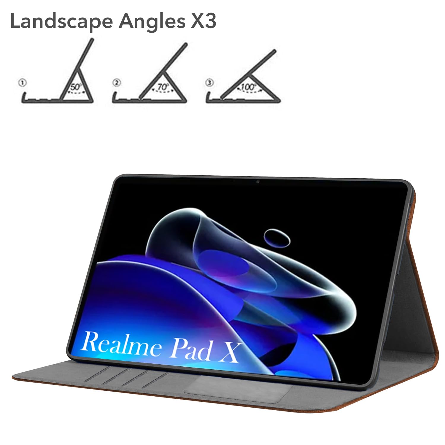 Jkobi Flip Cover Folio Case for Realme Pad X 10.95 Inch RMP2107/P2108 (PU Leather | Multi-Angle Smart Stand | Card Storage Slots | Silicone Back Pouch)