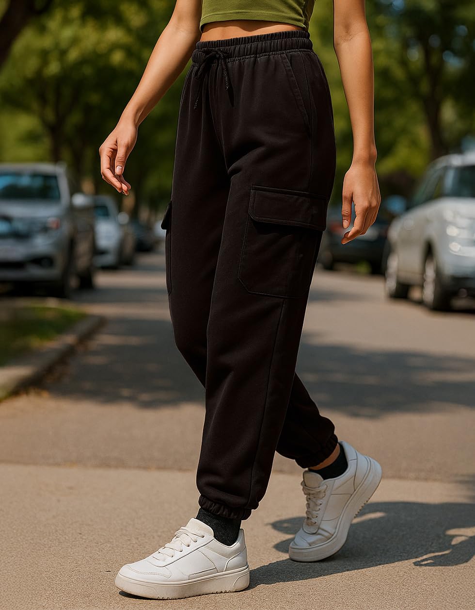 JUNEBERRY® 100% Pure Cotton Regular Fit Mid Rise Cargos with Pocket for Women & Girls