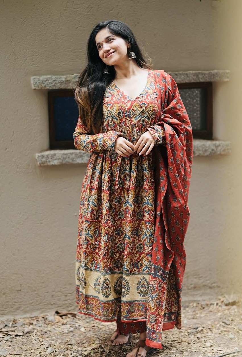 Nermosa Women Printed Anarkali Kurta and Pant Set with Dupatta
