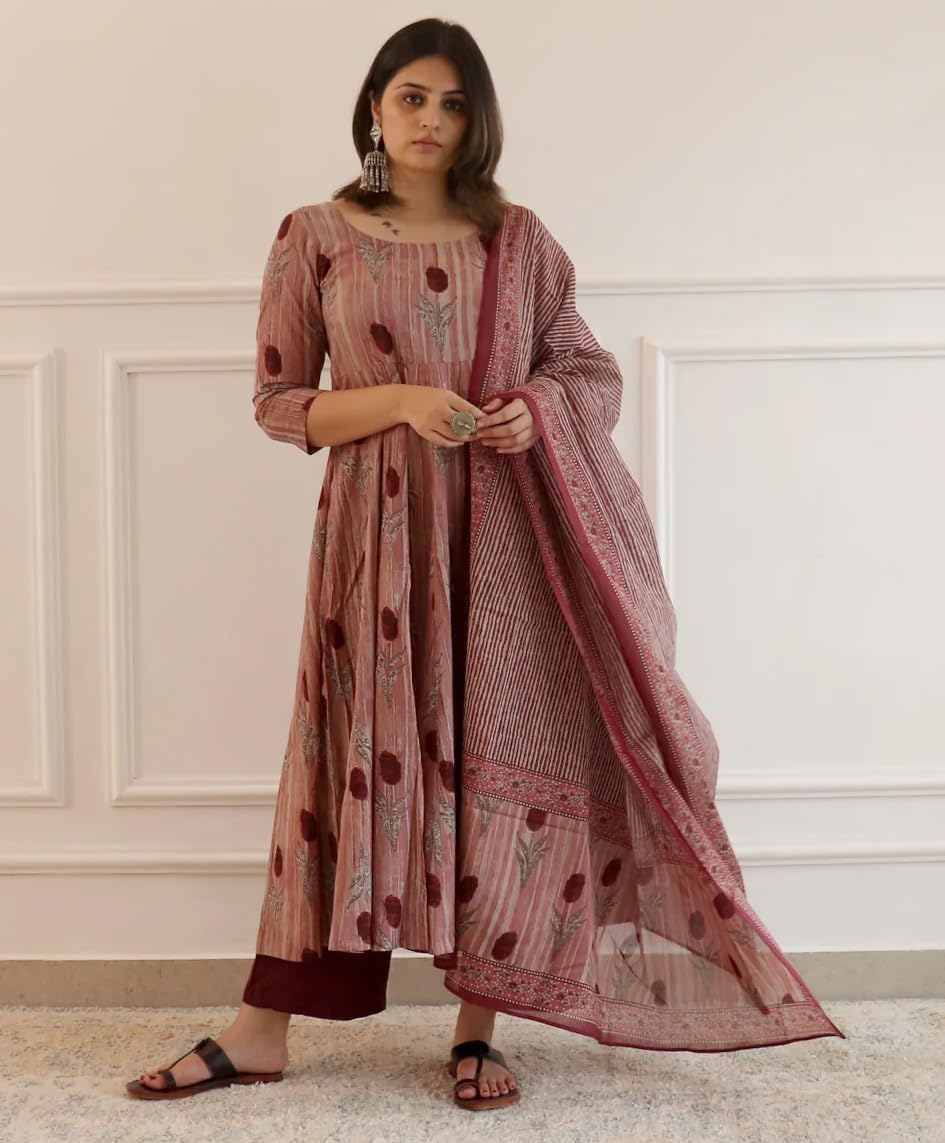 Nermosa Women Printed Anarkali Kurta and Pant Set with Dupatta