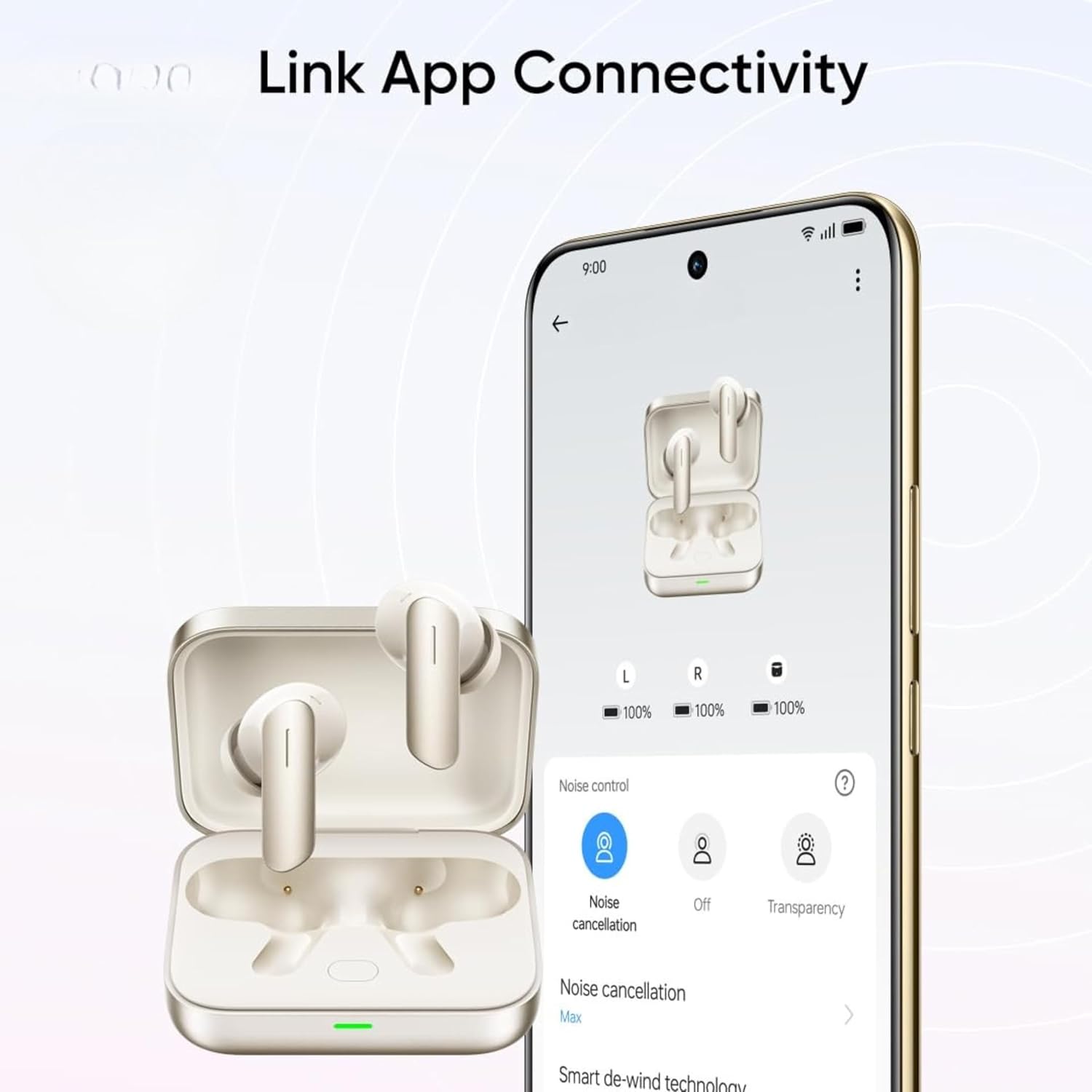 Original Wireless Earbuds Air7 for Realme, Up to 52 Hours Playback, Advanced Hybrid ANC up to 52dB, 6-Mic Call Noise Reduction [Ivory Gold]