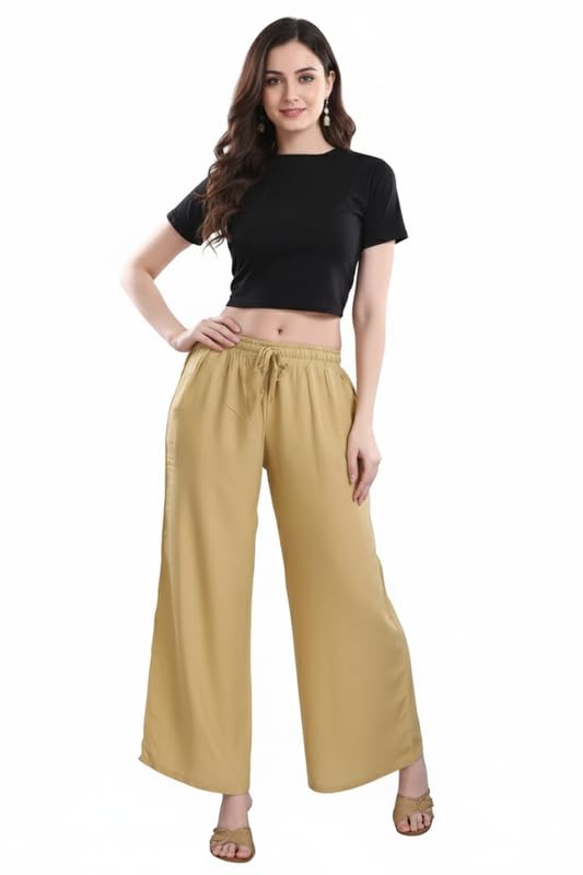 Solid Flared Palazzo Pant for Women Soft Breathable Viscose Rayon Straight Loose Fit Wide Leg Ethnic Set Perfect Office Formal Wear