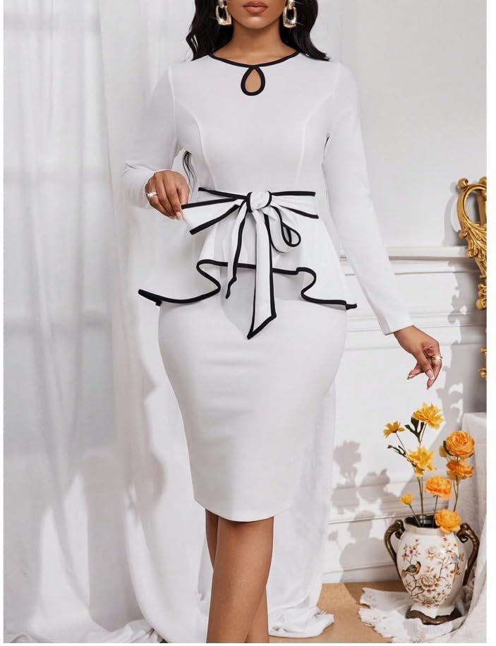 Women’s 2 Piece Elegant Peplum Dresses for Women Business Knee Length Bodycon Skirt Set Sleeve Church Dresses Suit Formal Office Midi Pencil Skirt