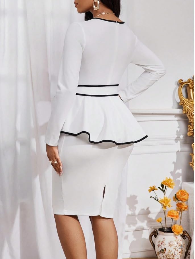 Elegant 2-Piece Peplum Dress Set – Sophisticated Office & Formal Wear