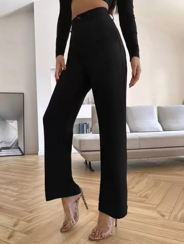 Women’s High Waisted Wide Leg Trousers Button,Formal Straight Fit Pants