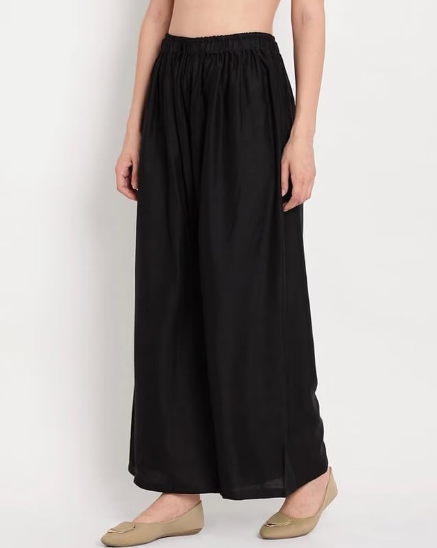 Women’s Rayon Solid Palazzo Pants for Women | Wide Leg Trousers | Elastic Waist Comfortable Flared Bottoms for Daily, Office & Ethnic Wear