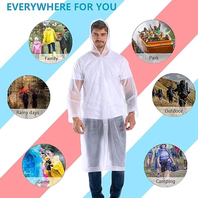 Waterproof Rain Coat Hooded Universal Outdoor Water Resistant Rainwear Suit for Men Women Boys & Girls (Pack of 2) (Universal, Random)