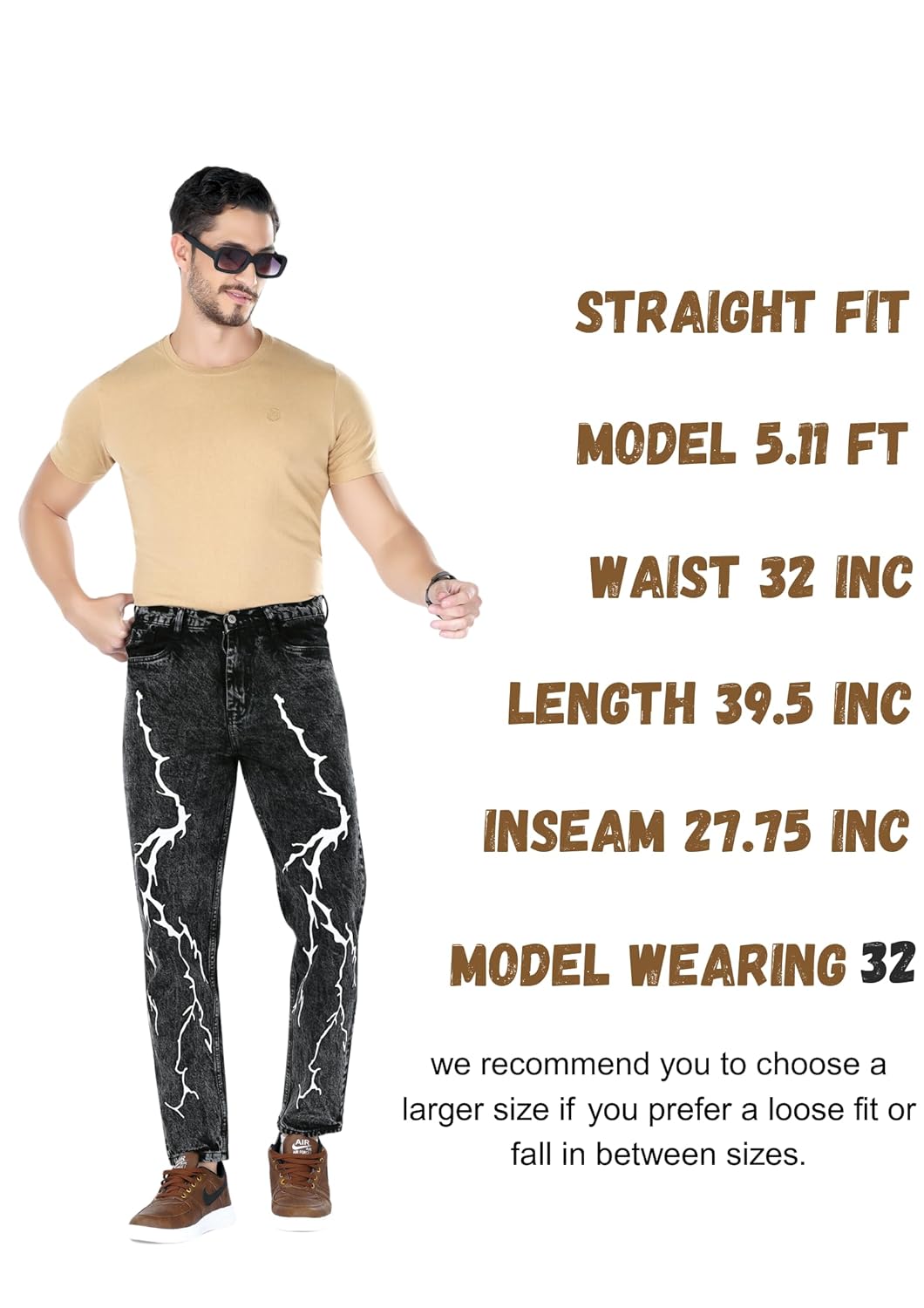 Straight Fit Non-Stretchable Mid Rise Lightening Printed Pure Cotton Premium Fabric Men’s Jeans Comes in